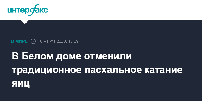 Москва. 16 марта. INTERFAX.RU - В Белом Доме в понедельник в целях предосторожности отменили ежегодную пасхальную игру "катание яиц" из-за распространения коронавируса COVID-19, сообщил в понедельник офис первой леди США Мелании Трамп.