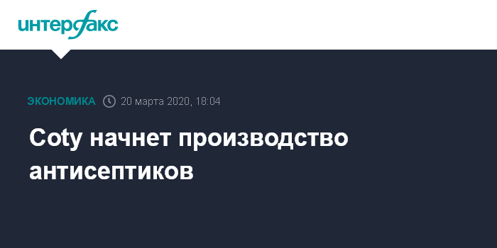 Москва. 20 марта. INTERFAX.RU - Американский производитель косметики и парфюмерии Coty решил наладить выпуск антисептиков для рук и пообещал при необходимости поставлять их в больницы и экстренные службы. Об этом говорится в сообщении компании.