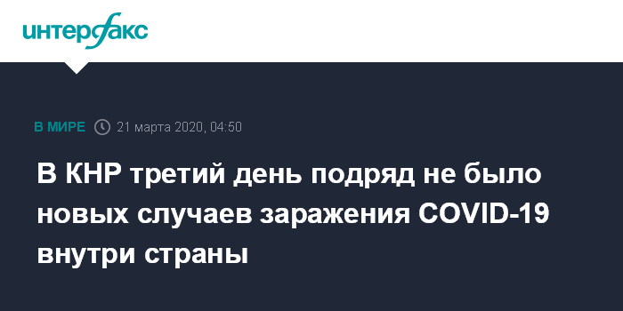 В КНР третий день подряд не было новых случаев заражения COVID-19 внутри страны