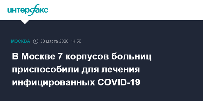 В Москве 7 корпусов больниц приспособили для лечения инфицированных COVID-19