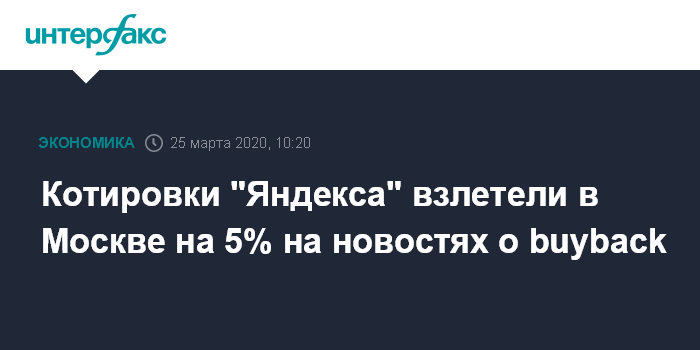 Вечером 24 марта аналитики Goldman Sachs сообщили, что на фоне падения рынков "Яндекс" ускоряет реализацию программы buyback на сумму до $300 млн. Это сообщение появилось после телефонной конференции "День российского интернета", в которой участвовал менеджмент "Яндекса".