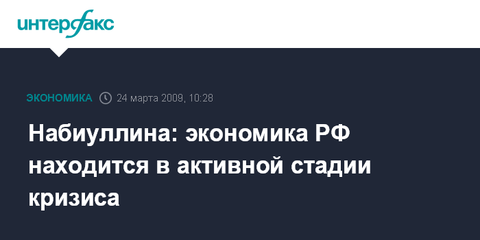 Москва. 24 марта. INTERFAX.RU - Экономика РФ находится в активной стадии кризиса, заявила глава Минэкономразвития РФ Эльвира Набиуллина, выступая на расширенном заседании коллегии во вторник в Москве.