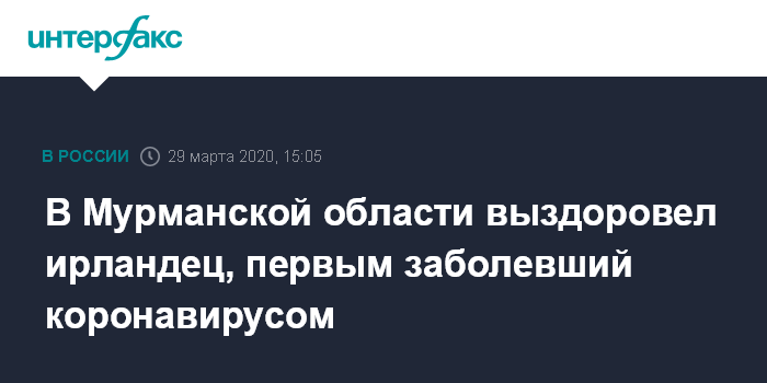 Москва. 29 марта. INTERFAX.RU - В Мурманске выздоровел 19-летний гражданин Ирландии, который стал первым в регионе человеком, заразившимся новым типом коронавируса.