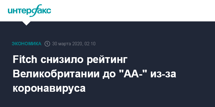Fitch снизило рейтинг Великобритании до "АА-" из-за коронавируса