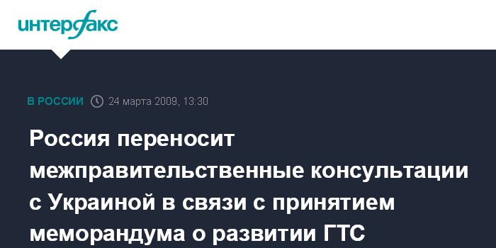 Россия переносит межправительственные консультации с Украиной в связи с принятием меморандума о развитии ГТС