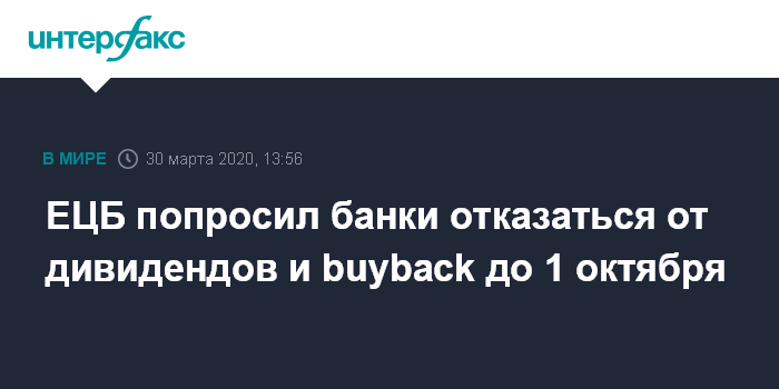 ЕЦБ попросил банки отказаться от дивидендов и buyback до 1 октября
