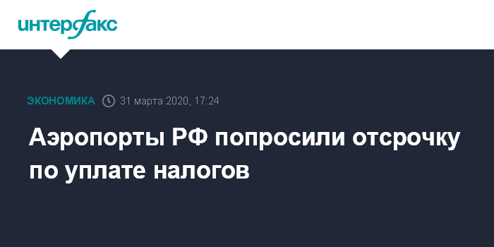 Москва. 31 марта. INTERFAX.RU - Международная ассоциация аэропортов (МАА) просит Минтранс РФ распространить на аэропорты отсрочку по уплате налогов, предусмотренную для организаций малого и среднего предпринимательства.