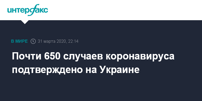 Москва. 31 марта. INTERFAX.RU - На Украине по состоянию на вечер вторника лабораторно подтверждено 645 случаев инфицирования коронавирусом, сообщили в министерстве здравоохранения Украины.