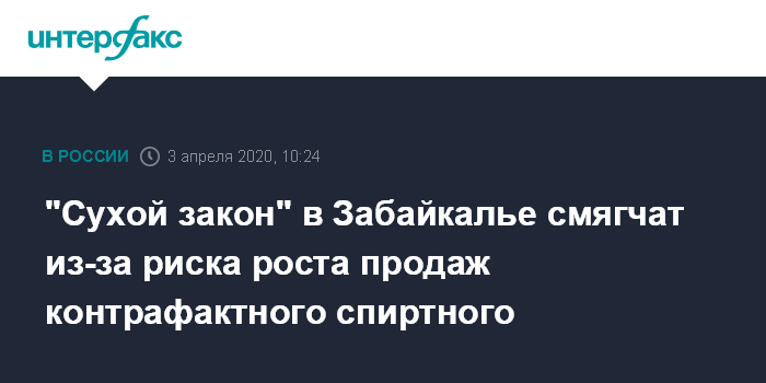Москва. 3 апреля. INTERFAX.RU - Полный запрет на продажу алкоголя, введенный в Забайкальском крае 2 апреля, отменят, но ограничительные меры сохранят, сообщил исполняющий обязанности министра экономического развития региона Александр Бардалеев.