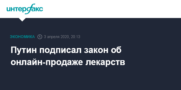 Москва. 3 апреля. INTERFAX.RU - Президент РФ Владимир Путин подписал закон, которым разрешается дистанционная продажа безрецептурных препаратов, а также оговариваются возможности продажи рецептурных лекарств.