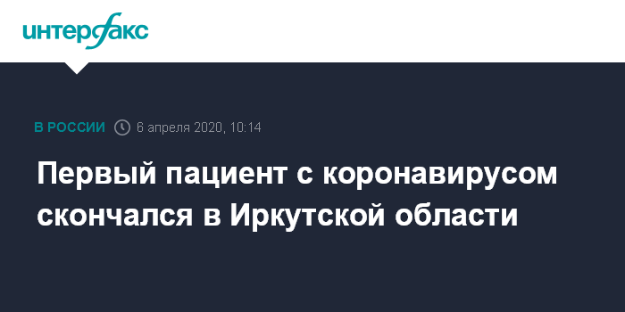 Москва. 6 апреля. INTERFAX.RU - Первый случай гибели зараженного новой коронавирусной инфекцией пациента зарегистрирован в Иркутской области.