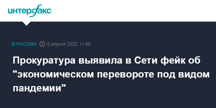 Прокуратура выявила в Сети фейк об "экономическом перевороте под видом пандемии"