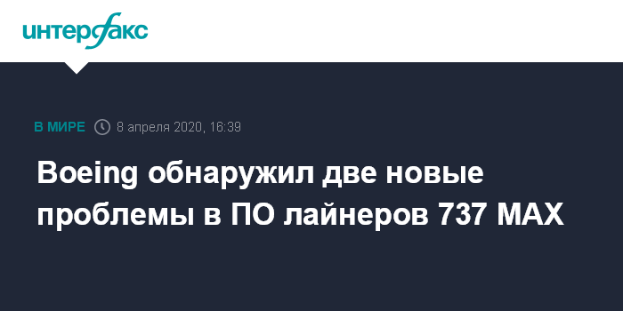 Москва. 8 апреля. INTERFAX.RU - Американский авиастроительный концерн Boeing обнаружил две новые проблемы с программным обеспечением лайнеров 737 MAX.