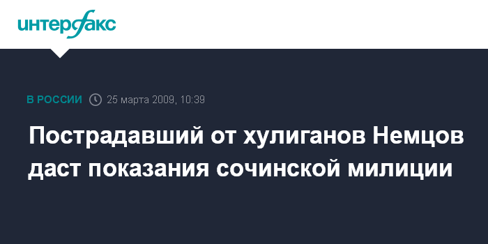 Пострадавший от хулиганов Немцов даст показания сочинской милиции