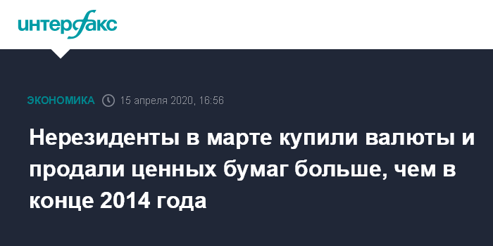 Москва. 15 апреля. INTERFAX.RU - Нерезиденты в марте 2020 года купили иностранной валюты в рублевом эквиваленте и продали ценных бумаг на российском рынке больше, чем в конце 2014 года, но реакция российского финансового рынка на столь значительный шок оказалась достаточно сдержанной - всплеск волатильности курса рубля был заметно меньше уровня 2014 года. Об этом говорится в обзоре рисков финансовых рынков, опубликованном на сайте ЦБ РФ.