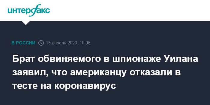 Брат обвиняемого в шпионаже Уилана заявил, что американцу отказали в тесте на коронавирус