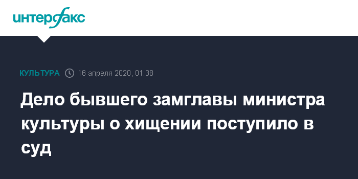 Дело бывшего замглавы министра культуры о хищении поступило в суд