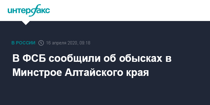 В ФСБ сообщили об обысках в Минстрое Алтайского края
