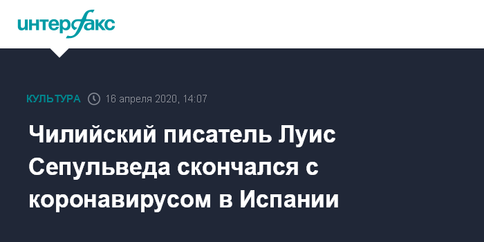 Шесть недель назад у Сепульведы диагностировали COVID-19. Он был одним из первых, у кого подтвердилось заражение в Испании. Писатель жил в этой стране с 1990-х годов.