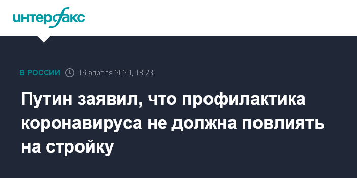 "Прошу применять здесь гибкие решения, находить баланс. И это возможно, как говорят специалисты. Для этого только нужно строго выполнять все требования безопасности труда, защиты здоровья работников, и при этом можно не тормозить стройку, не замораживать объекты", - продолжил Путин.