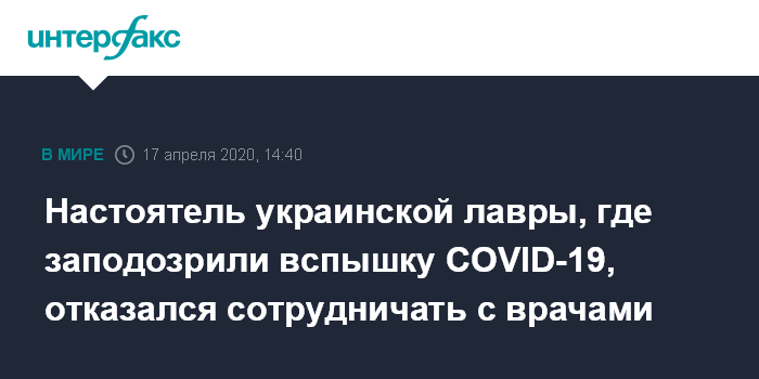 Настоятель украинской лавры, где заподозрили вспышку COVID-19, отказался сотрудничать с врачами
