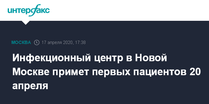 Москва. 17 апреля. INTERFAX.RU - Новая инфекционная больница в поселении Вороновское в Новой Москве примет первых пациентов в понедельник, 20 апреля, сообщил мэр Москвы Сергей Собянин.