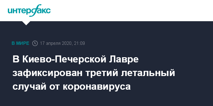 Москва. 17 апреля. INTERFAX.RU - В Киево-Печерской Лавре в результате коронавирусной инфекции скончался монах, сообщает пресс-служба Лавры.