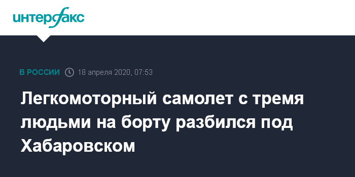 "Легкомоторный самолёт Л-4 разбился вблизи поселка Лесное в 30 км от Хабаровска. На борту было три человека. По предварительным данным выжить никому из них не удалось", - сказал источник.