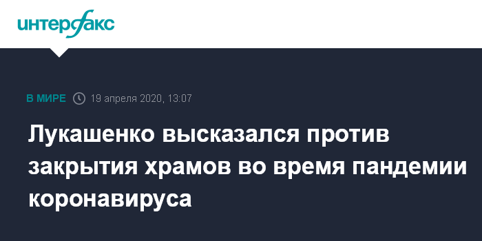Москва. 19 апреля. INTERFAX.RU - Президент Белоруссии Александр Лукашенко считает, что даже во время пандемии коронавируса COVID-19 нельзя закрывать храмы.