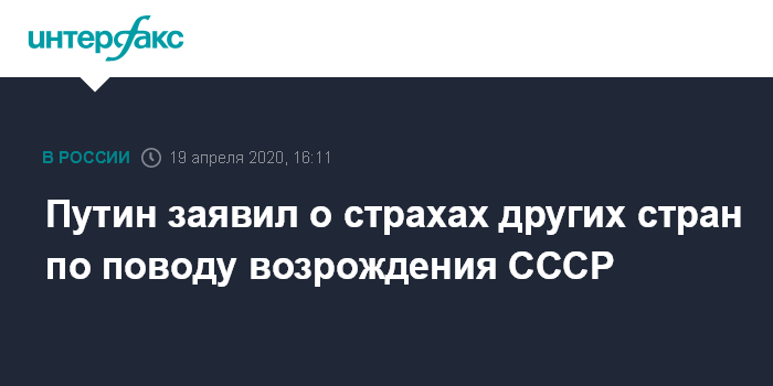 "Преодолевая какие-то фобии прошлого, преодолевая страхи по поводу возрождения Советского Союза и советской империи, все-таки понимание того, что объединение усилий на пользу всем, пробивает себе дорогу неизбежно. И чувствуя эти преимущества - а эти преимущества чувствуют все участники этого процесса, - мы двигаемся дальше, совершаем новые шаги и идем вперед", - отметил Путин в интервью, которое было записано еще 1 октября 2019 года, но прозвучало в эфире впервые. Его фрагмент приводится на сайте вести.ру.