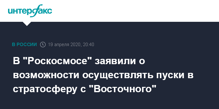 В "Роскосмосе" заявили о возможности осуществлять пуски в стратосферу с "Восточного"