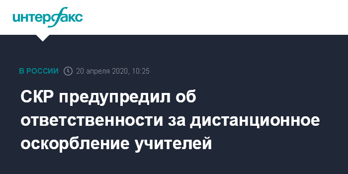 Москва. 20 апреля. INTERFAX.RU - Следственный комитет РФ (СКР) намерен привлекать к ответственности учеников и их родителей за оскорбления преподавателей при дистанционной форме обучения, сообщила официальный представитель ведомства Светлана Петренко.