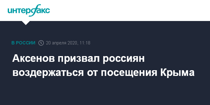 "Я убедительно прошу всех наших граждан воздержаться от приезда на территорию республики Крым, как для командировок, так и для отдыха, поскольку все крымские санатории и места отдыха закрыты", - сказал Аксенов в видеообращении, размещенном в твиттере.