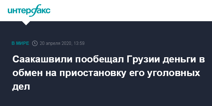 Взамен Саакашвили обещает организацию зарубежной помощи Грузии в размере $5,5 млрд для устранения ущерба, нанесенного грузинской экономике коронавирусом.