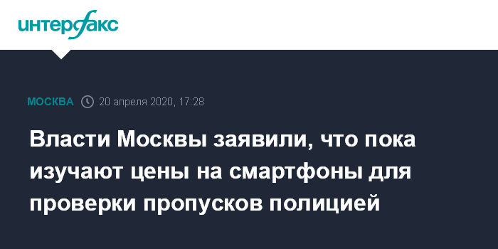 Ранее в понедельник газета "Коммерсантъ" написала, что мэрия планирует дополнительно закупить смартфоны для полицейских. "У московской полиции не хватает смартфонов для проверки цифровых пропусков граждан в период режима самоизоляции. Мэрия планирует дополнительно закупить для этих целей около 10 тыс. устройств на Android стоимостью до 12 тыс. рублей. Рассматриваются, в том числе, бюджетные модели. Но недорогие устройства вряд ли прослужат долго и могут нести риск для безопасности персональных данных граждан, предупреждают эксперты", - пишет газета.