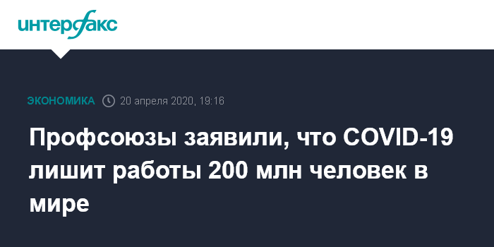 Профсоюзы заявили, что COVID-19 лишит работы 200 млн человек в мире
