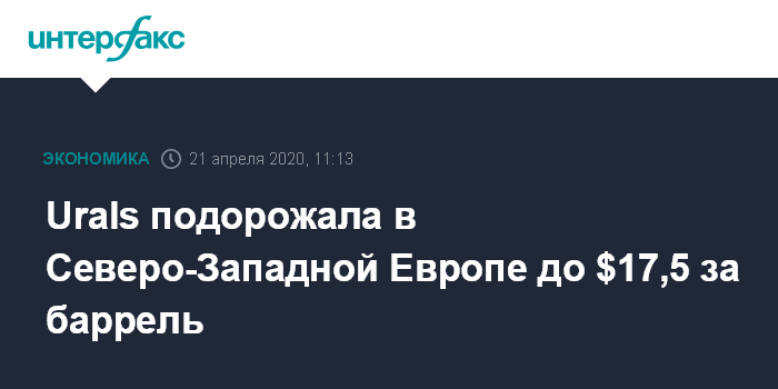 Москва. 21 апреля. INTERFAX.RU - Цена нефти Urals в Северо-Западной Европе (СЗЕ) в понедельник выросла в абсолютном исчислении на $0,52, до $17,51 за баррель (CIF Роттердам), сообщило ценовое агентство Argus. 1 апреля сорт дешевел до минимального значения с марта 1999 года - $10,54 за баррель.