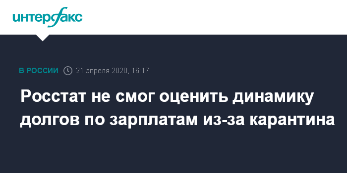 "В соответствии с указами президента РФ об объявлении нерабочих дней в период с 28 марта по 5 апреля и с 6 апреля по 30 апреля, ряд организаций полностью или частично прекратили работу. В связи с этим, темпы роста (снижения) суммарной задолженности по заработной плате на 1 апреля 2020 г. по сравнению с предыдущим периодом не рассчитывались, в силу неполной сопоставимости данных", - объяснила служба.