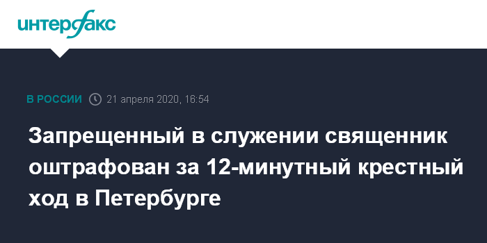Запрещенный в служении священник оштрафован за 12-минутный крестный ход в Петербурге