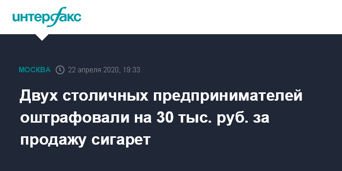 Двух столичных предпринимателей оштрафовали на 30 тыс. руб. за продажу сигарет