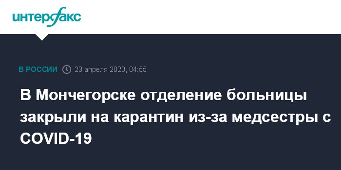 Москва. 23 апреля. INTERFAX.RU - В Мончегорской центральной районной больнице (ЦРБ) закрыто на карантин отделение кардиологии, сообщает оперативный штаб Мурманской области.