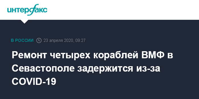 Москва. 23 апреля. INTERFAX.RU - Окончание ремонта четырех военных кораблей на 13-м судоремонтном заводе (СРЗ) в Севастополе сдвинулось до октября из-за распространения коронавируса, сообщает в четверг газета "Известия".
