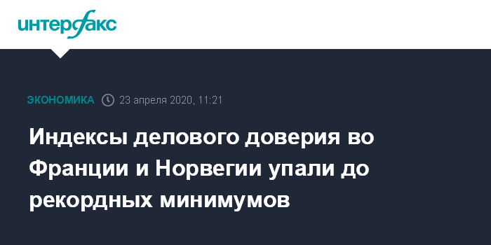 Индексы делового доверия во Франции и Норвегии упали до рекордных минимумов