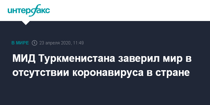 МИД Туркменистана заверил мир в отсутствии коронавируса в стране