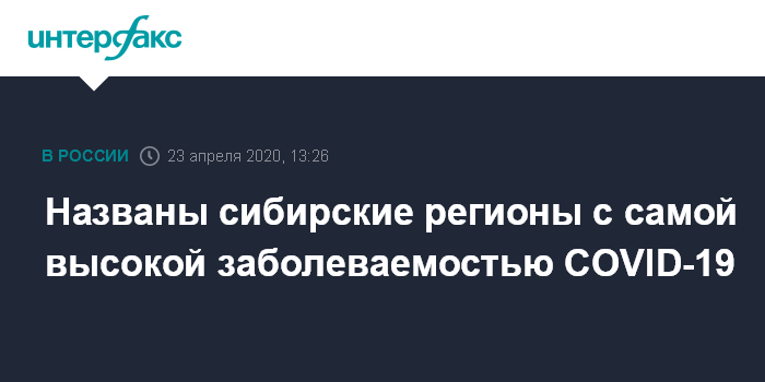 Москва. 23 апреля. INTERFAX.RU - Заболеваемость коронавирусной инфекцией в Сибири составляет 6,1 человек на 100 тыс. населения, число выявляемых больных продолжает расти, всего подтверждено свыше тысячи случаев заболевания, самая неблагоприятная ситуация по коронавирусу складывается в Хакасии и Красноярском крае.