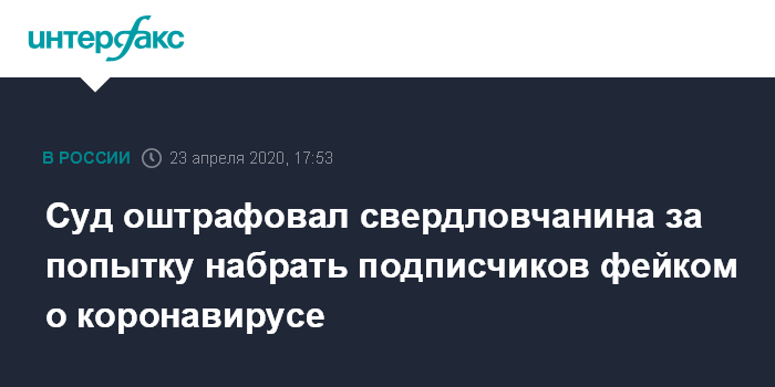 Суд оштрафовал свердловчанина за попытку набрать подписчиков фейком о коронавирусе