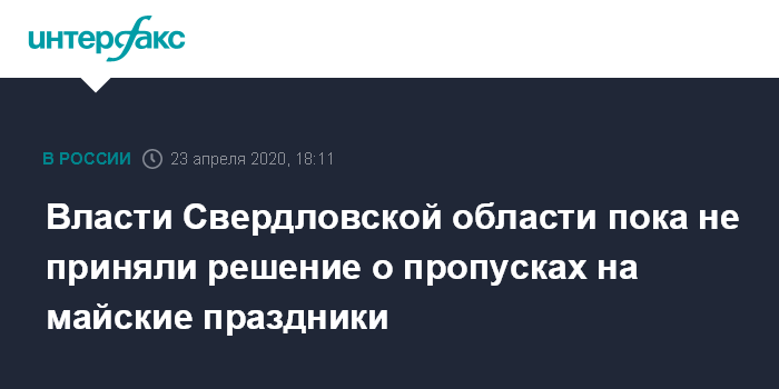 Власти Свердловской области пока не приняли решение о пропусках на майские праздники