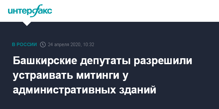 Москва. 24 апреля. INTERFAX.RU - Госсобрание Башкирии приняло закон, который отменил запрет массовых акций рядом со зданиями органов государственной власти и муниципальных администраций. Об этом сообщила пресс-служба парламента.