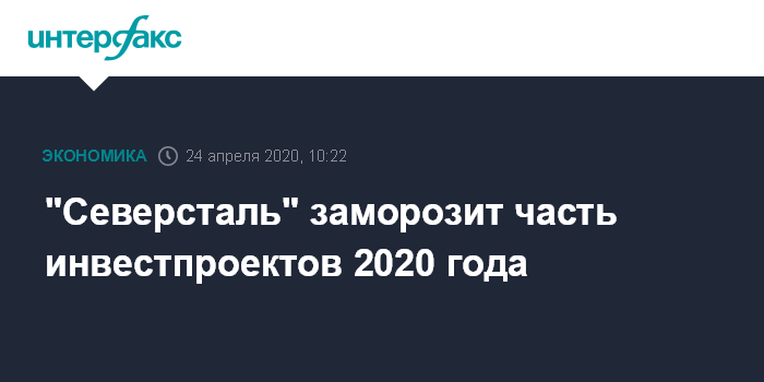 Москва. 24 апреля. INTERFAX.RU - "Северсталь" решила приостановить часть инвестиционных проектов в 2020 году, по некоторым проектам изменила график финансирования, чтобы сохранить финансовую устойчивость. Об этом сообщил гендиректор компании Александр Шевелев, представляя квартальный отчет.