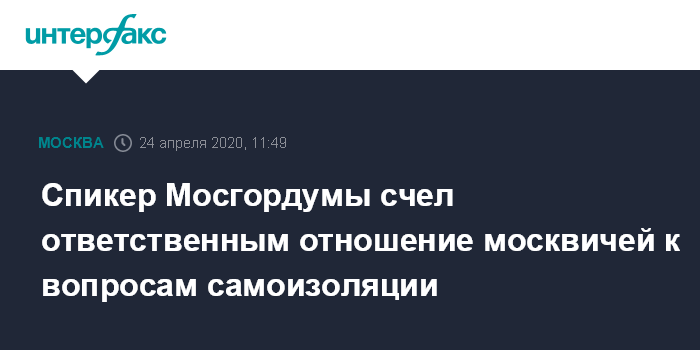 Спикер Мосгордумы счел ответственным отношение москвичей к вопросам самоизоляции